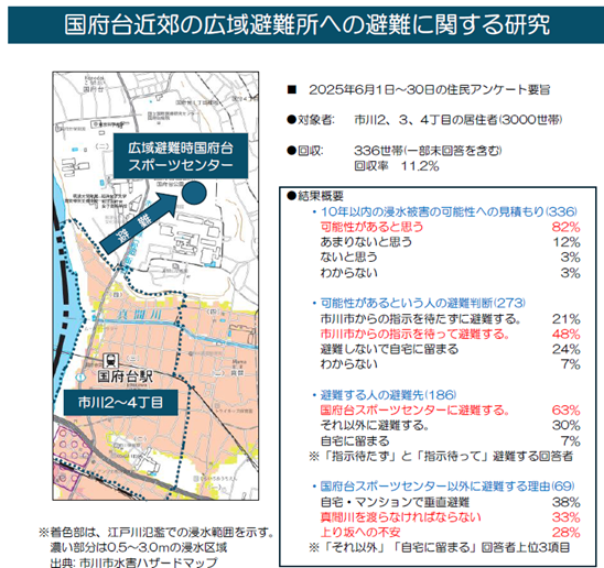 ケート調査(3000世帯)を6月に実施し、回答の分析とともに避難行動に関するシミュレーシ