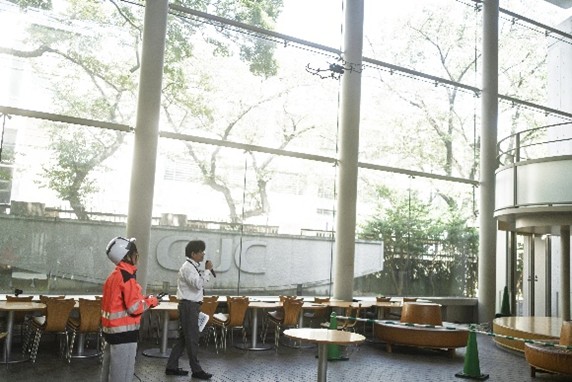 最近のメガハザードに対する各種調査において、ドローンが大幅に活用されており、本学を事例とした教育機関での各種ハザードへの罹災時対応への活用研究を行っている。学内での適用可能性を確認するため、「国府台コンソーシアム防災の日」イベントで、あいおいニッセイ同和損害保険株式会社の協力を得て、屋内試行運転を実施した。(楜沢順)