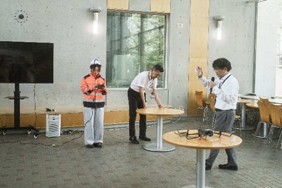 ける室内での実演を成功と、本学における防災時のドローンの取り組みを多くの人に伝えることが