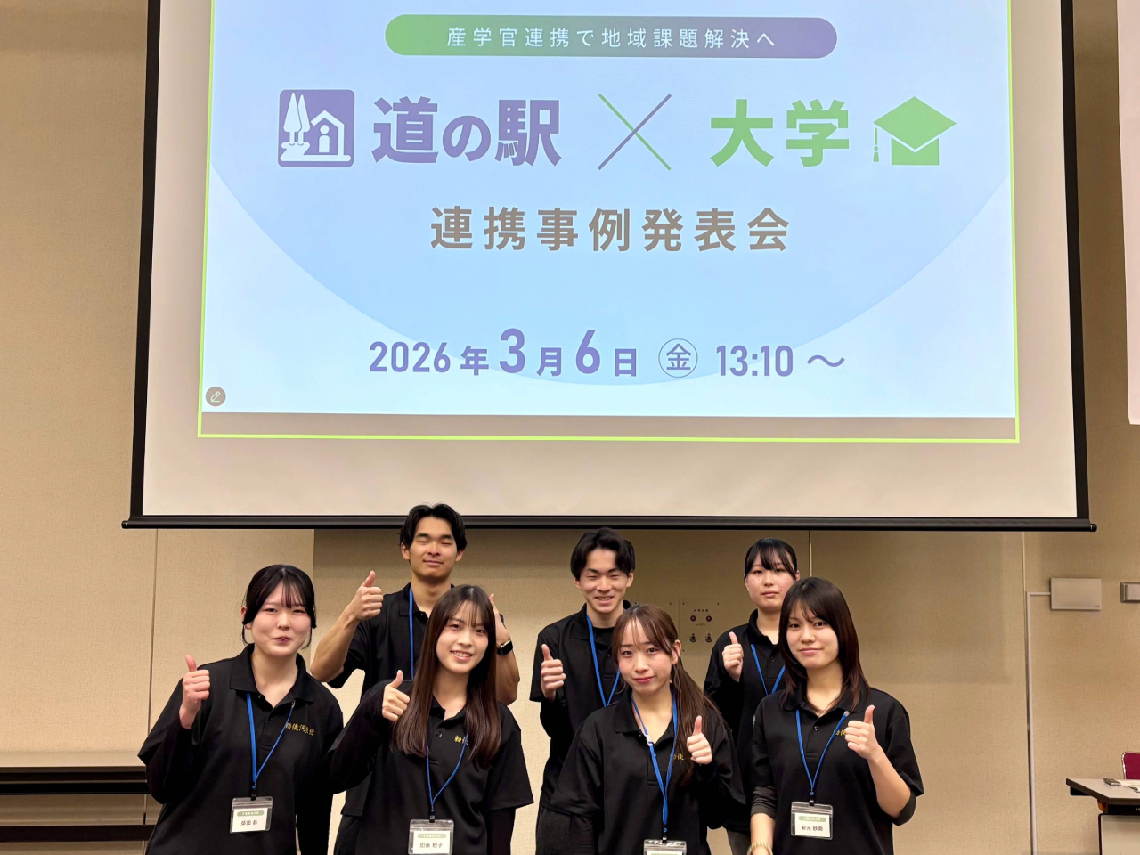 3月6日に国土交通省北海道開発局が主催する「道の駅×大学連携事例発表会」が開催されました。今年は全国13の道の駅と大学が登壇し、本学からは「道の駅いちかわ」との連携について、人間社会学部勅使河原隆行教授とゼミナール生が発表を行いました。