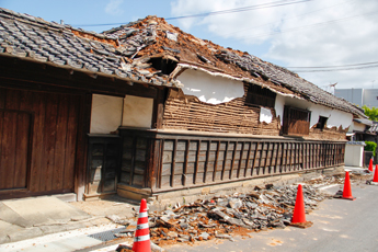 宇土市では前震が震度5強・マグニチュード6.5、直後の最大余震が震度5強・マグニチュード6.4、本震が震度6強・マグニチュード7.3を観測。